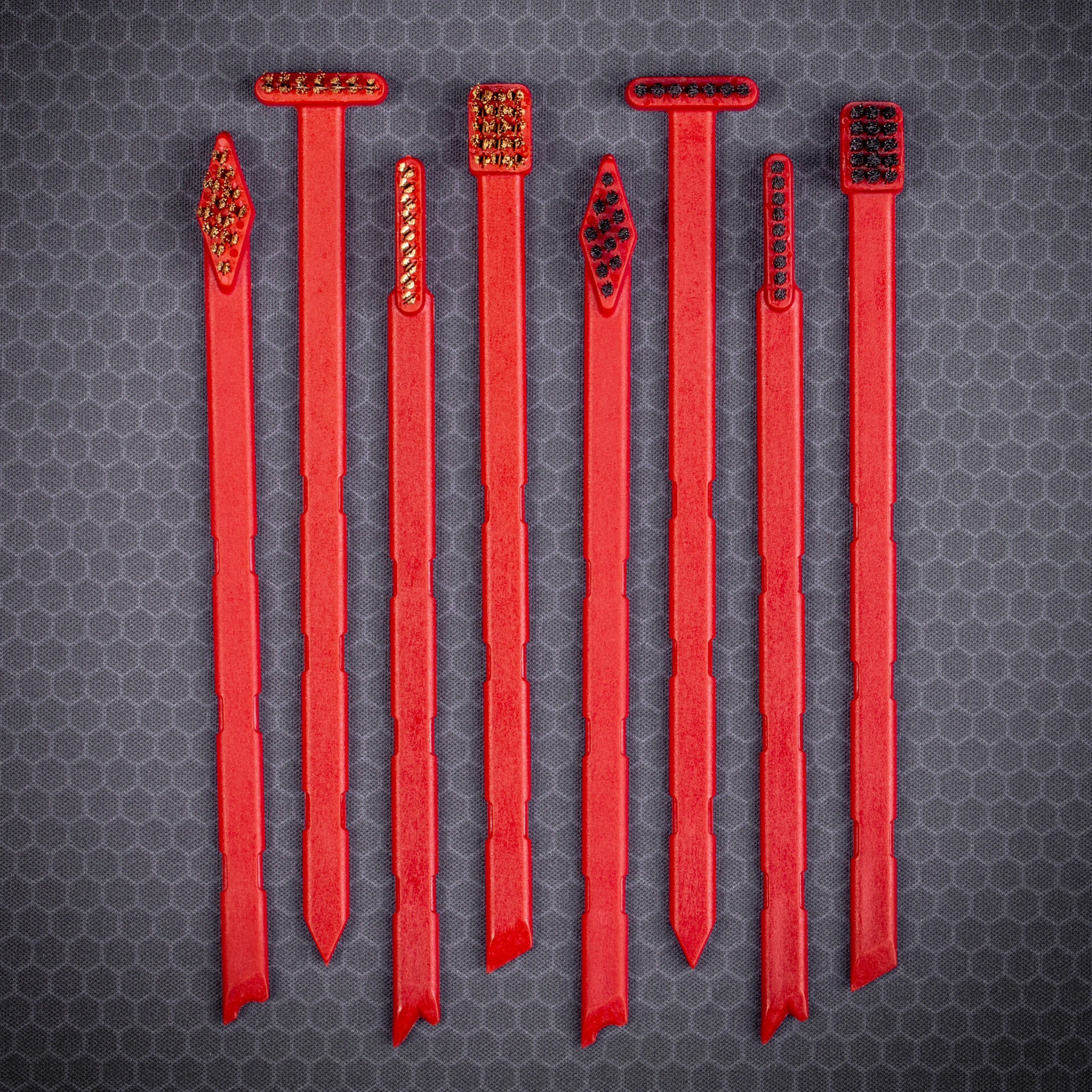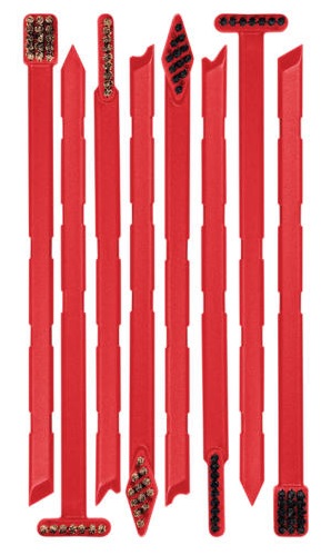 – 4 tiges en résine avec à chaque extrémité une brosse Nylon et un grattoir de différentes formes
