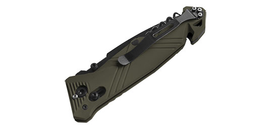 La lame est constituée de Nitrox®, peut être choisie en version Mixte (lisse + serration) ou Lisse. Le couteau possède différentes déclinaisons, avec ou sans coupe sangle, avec ou sans tire-bouchon en manche PA6 ou G10