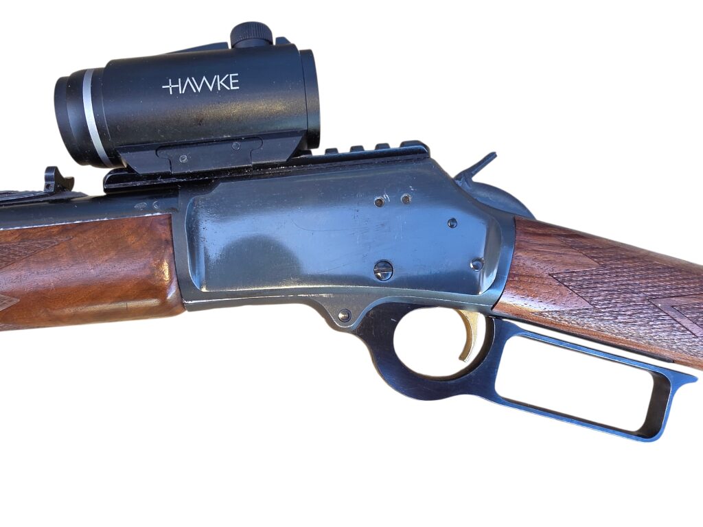 Carabine Marlin a levier de sous garde 1894 Cal : 44 Rem Mag + point rouge Hawke d’occasion