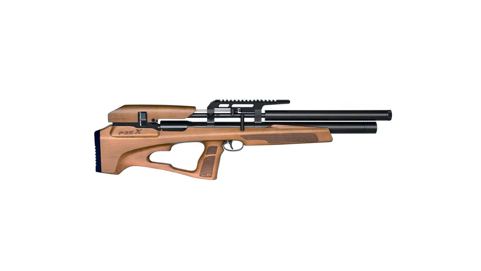 Carabine PCP a réaremement manuel (culasse linéaire) avec une crosse rabattable équipée d’une détente réglable, un chargeur rotatif, et un modérateur de son pour un confort maximal lors du tir.