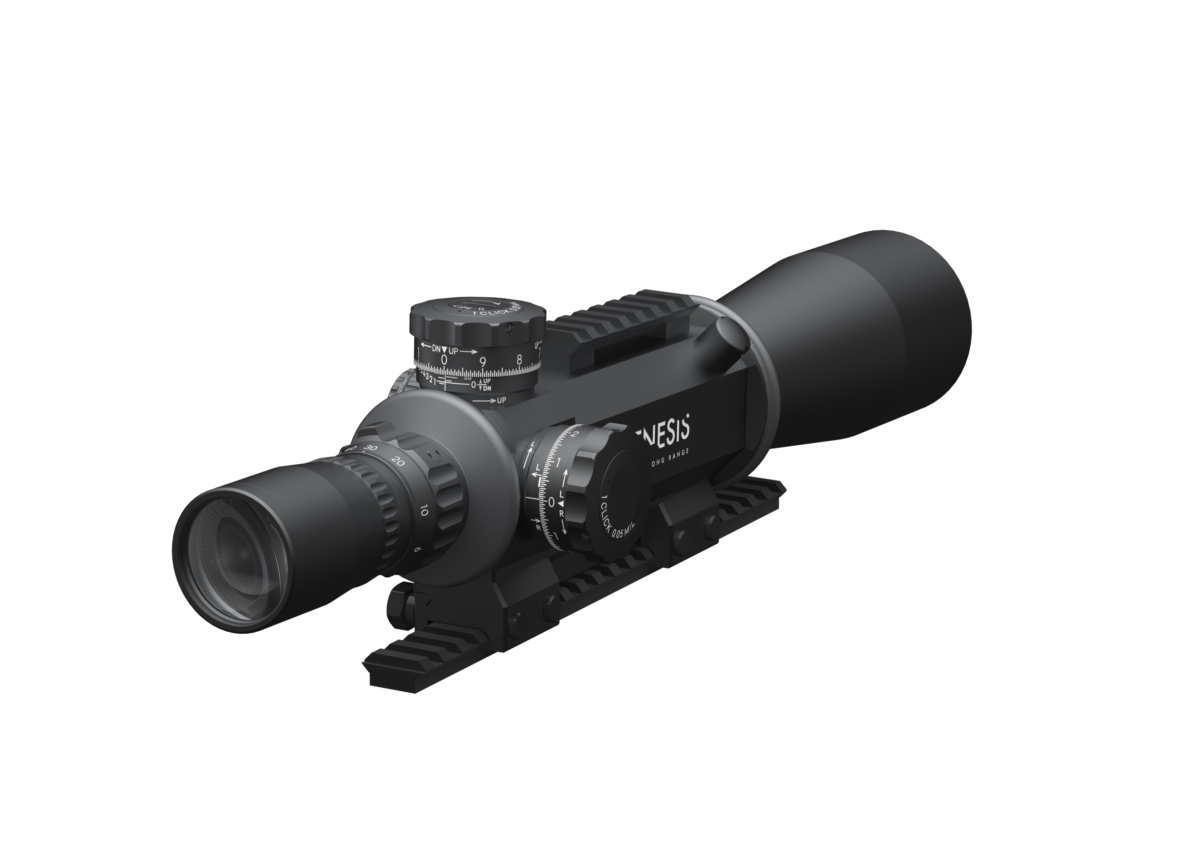 Mars “GENESIS” 6x-60x56mm avec 114 mil de course d’élévation totale sans utiliser d’accessoires externes.