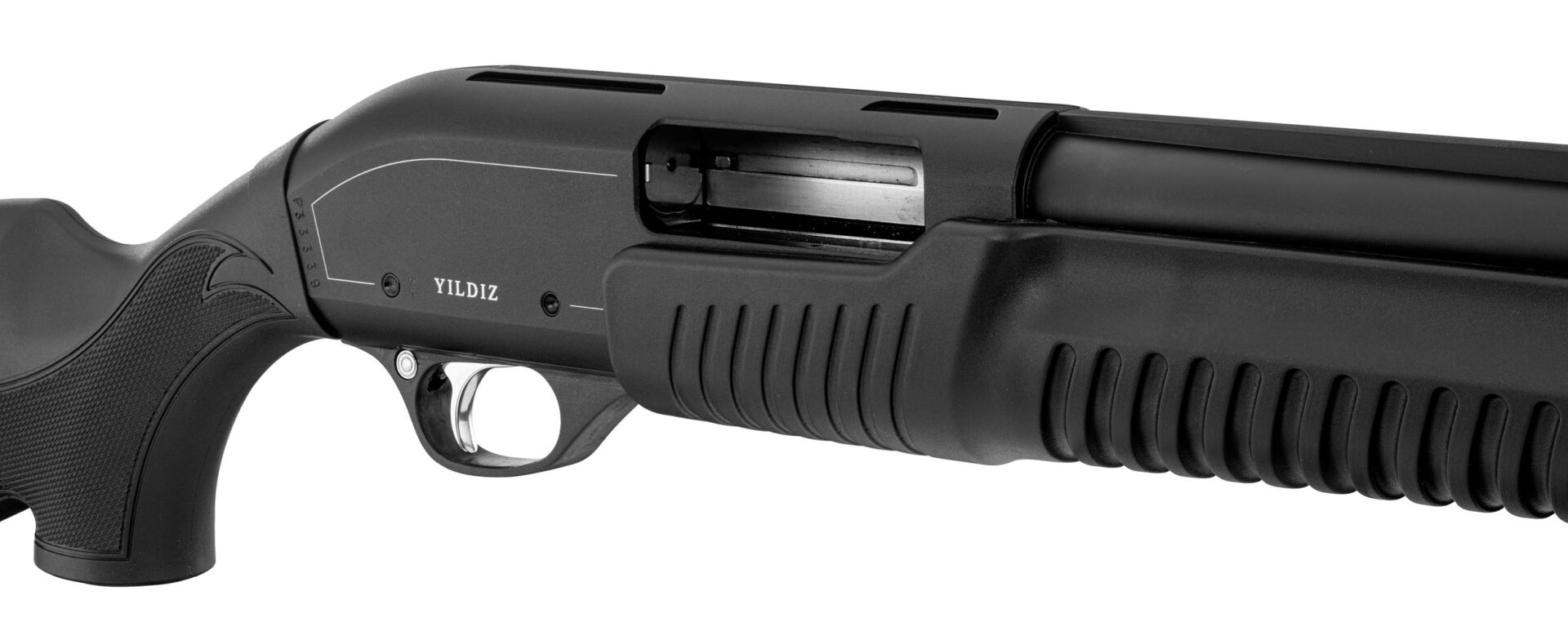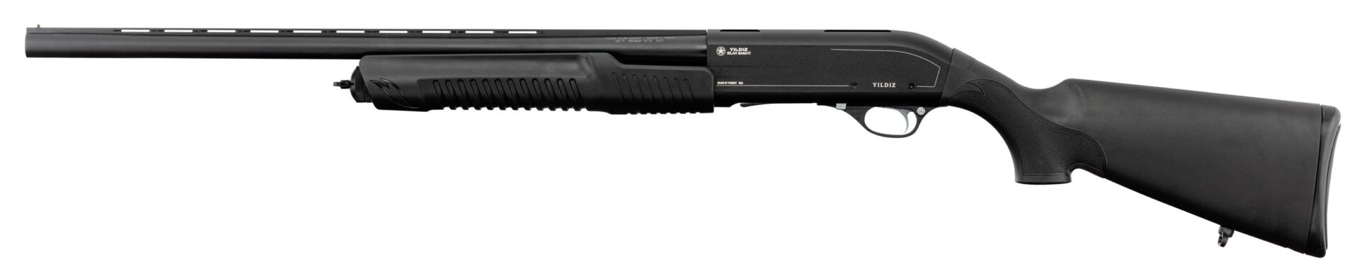 La firme YLDIZ implantée en Turquie depuis 45 ans, ne fabricant pas moins de 60 000 pièces par an d’armes de chasse, propose désormais sa gamme de fusil à pompe. La gamme YLDIZ est chambrée en calibre 12 MAGNUM, la carcasse usinée dans un alliage 7075 nous offre un gain de poids, son canon rayé de 61 à 71 centimètres en fonction des modèles est usiné / percé dans un acier 4140. Le pièces internes sont elle aussi en acier de haute qualité. Son magasin tubulaire peut être approvisionné de 4 cartouches + 1 dans la chambre. La firme YILDIZ soumet tous les modèles à des tests de précision sur cible à des intervalles spécifiques.