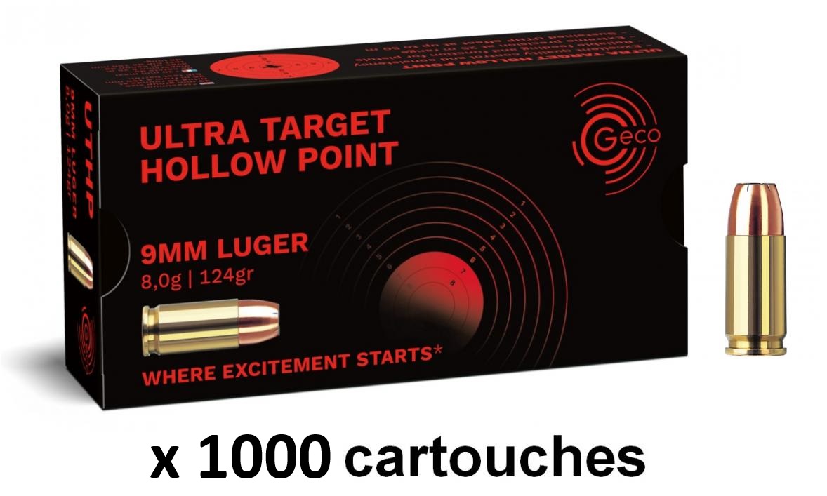 Munitions GECO cal.9mm PARA JHP Ultra Target Hollow Point 124 Gr x 500