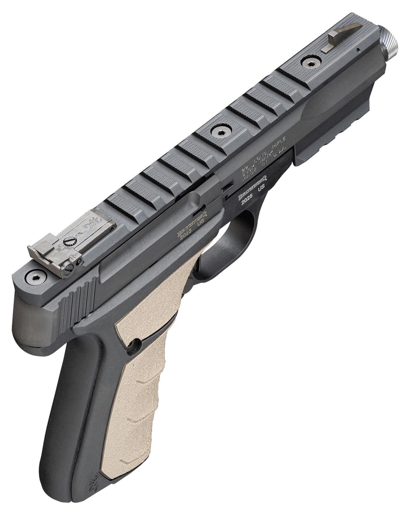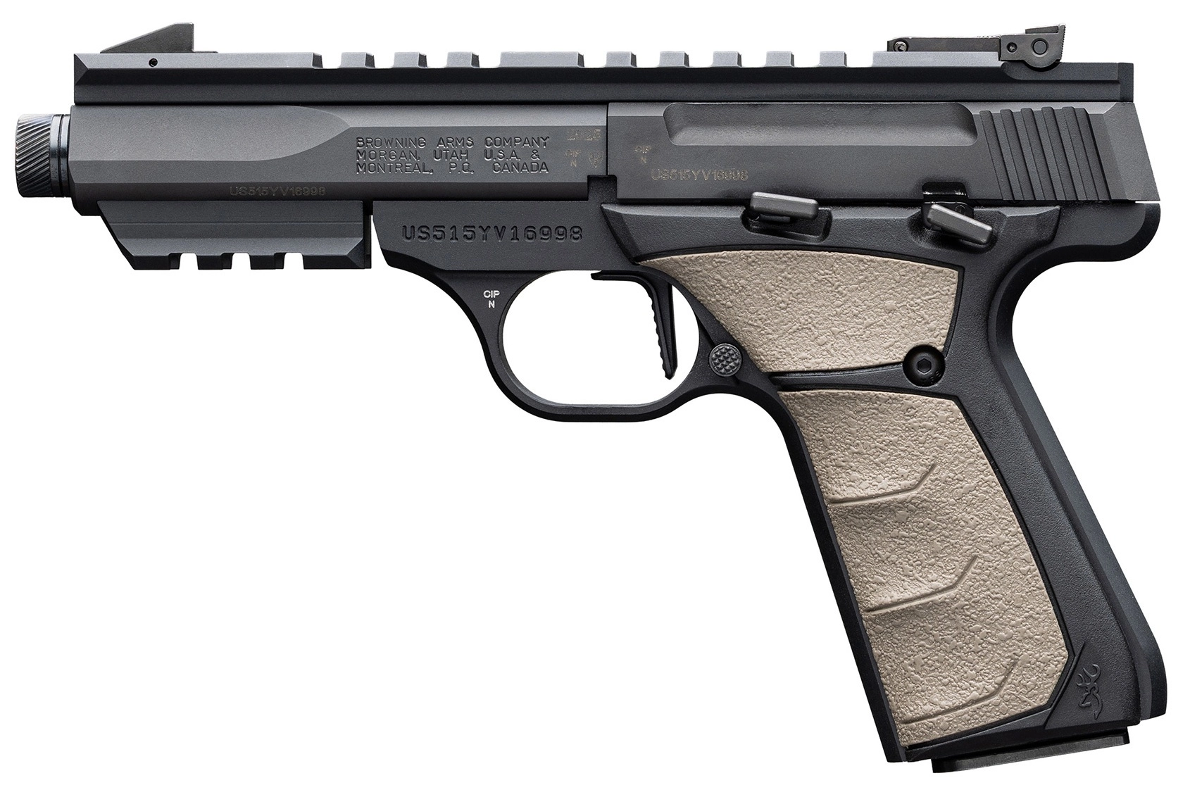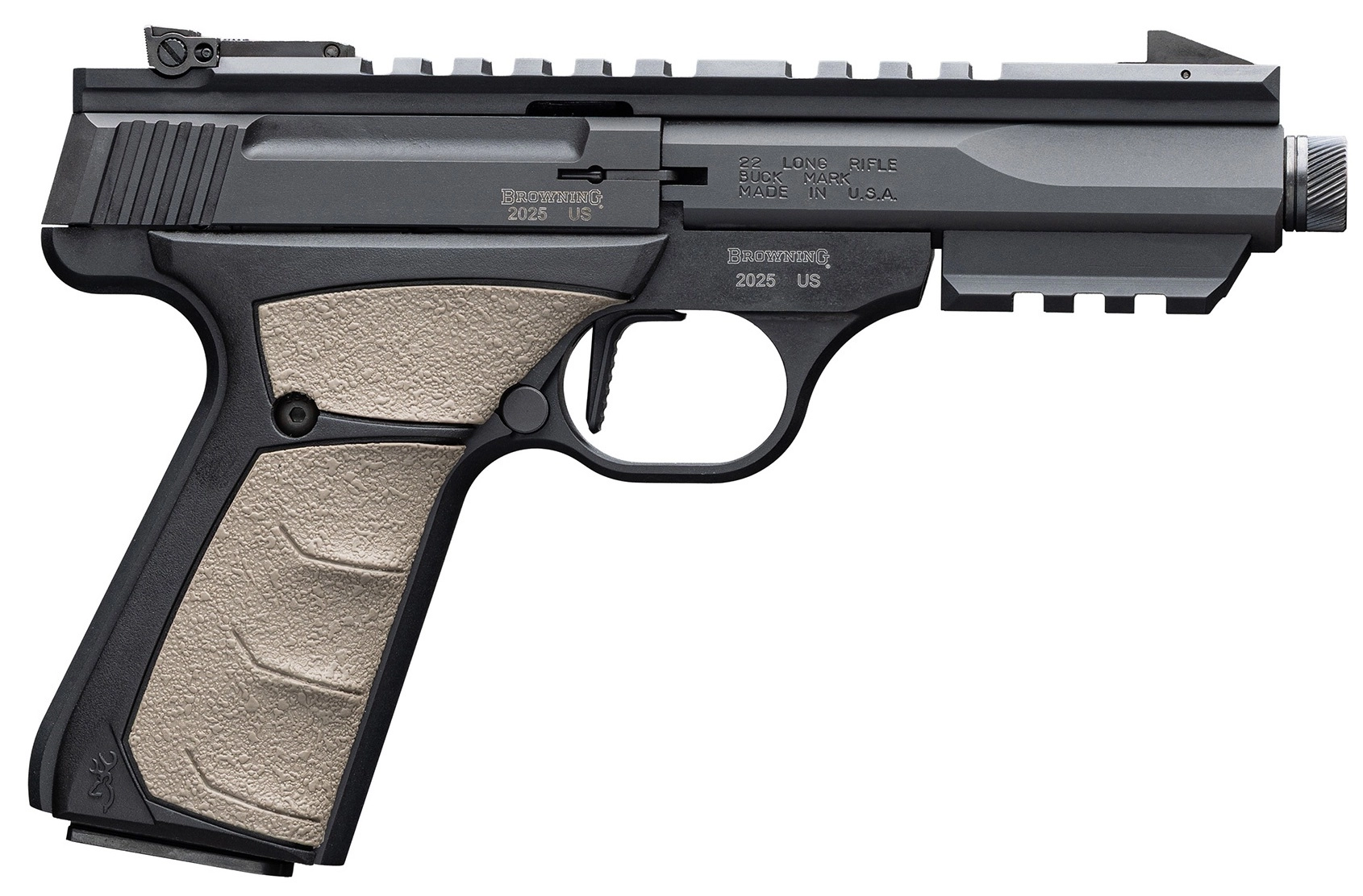 Un pistolet .22 LR compact et précis, pensé pour le tir sportif et l’entraînement, combinant ergonomie Buck Mark, canon fileté et finition FDE moderne.