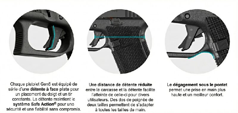 Détente : Détente “Striker-fired” (Simple action) — système Safe Action®.