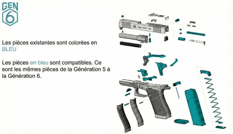 La culasse adopte le nouveau MOS Gen6, plus bas et plus stable :  plaques optiques plus fines,  vis de fixation plus profondes,  point rouge abaissé pour une prise de visée plus rapide et plus fluide.