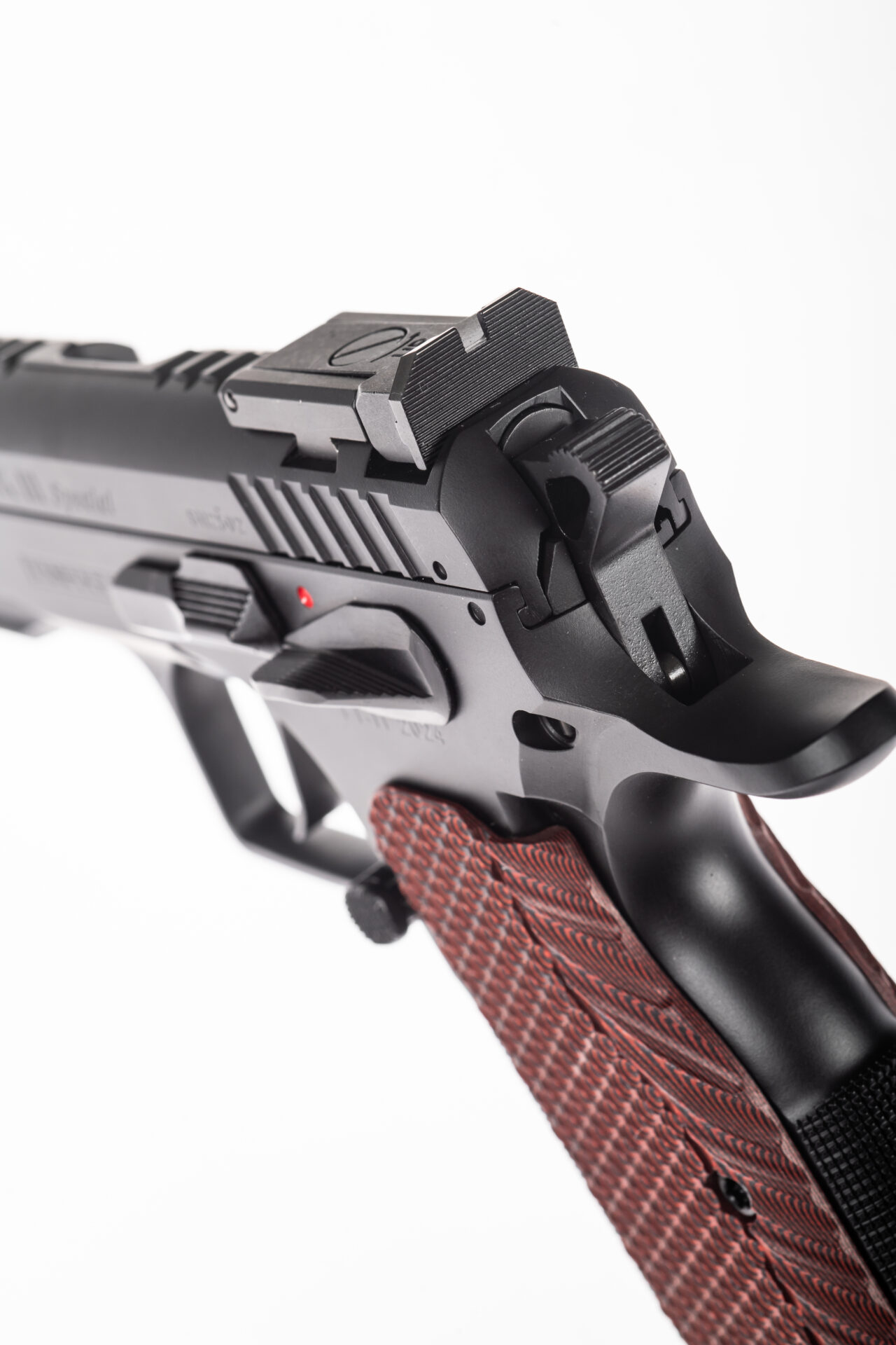 Enfin, les plaquettes G10 antidérapantes garantissent un grip ferme et constant, même en cadence, tandis que le puits de chargeur évasé facilite les rechargements rapides, un avantage évident pour les disciplines dynamiques.
