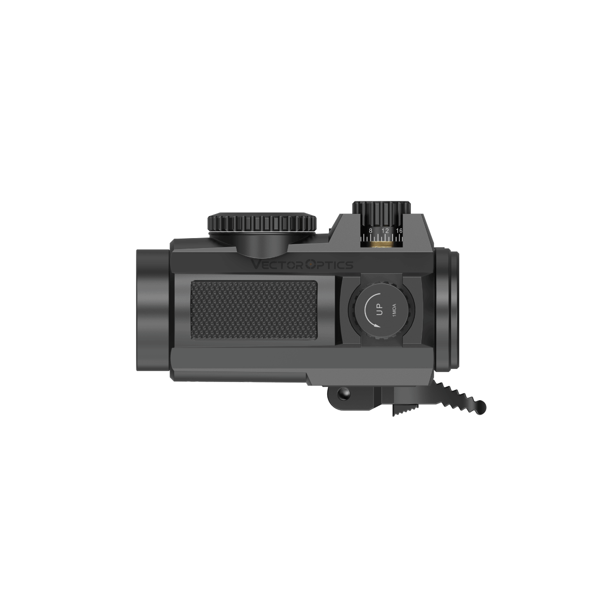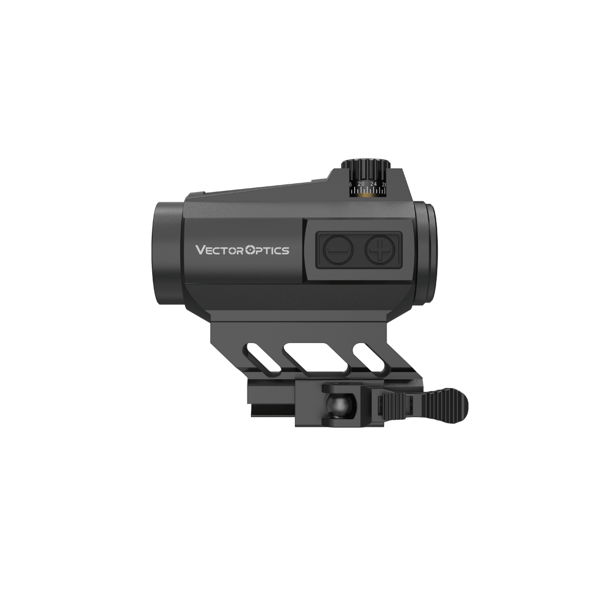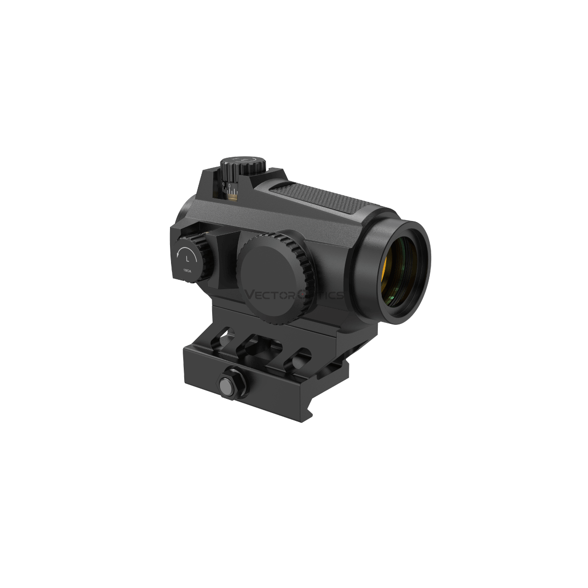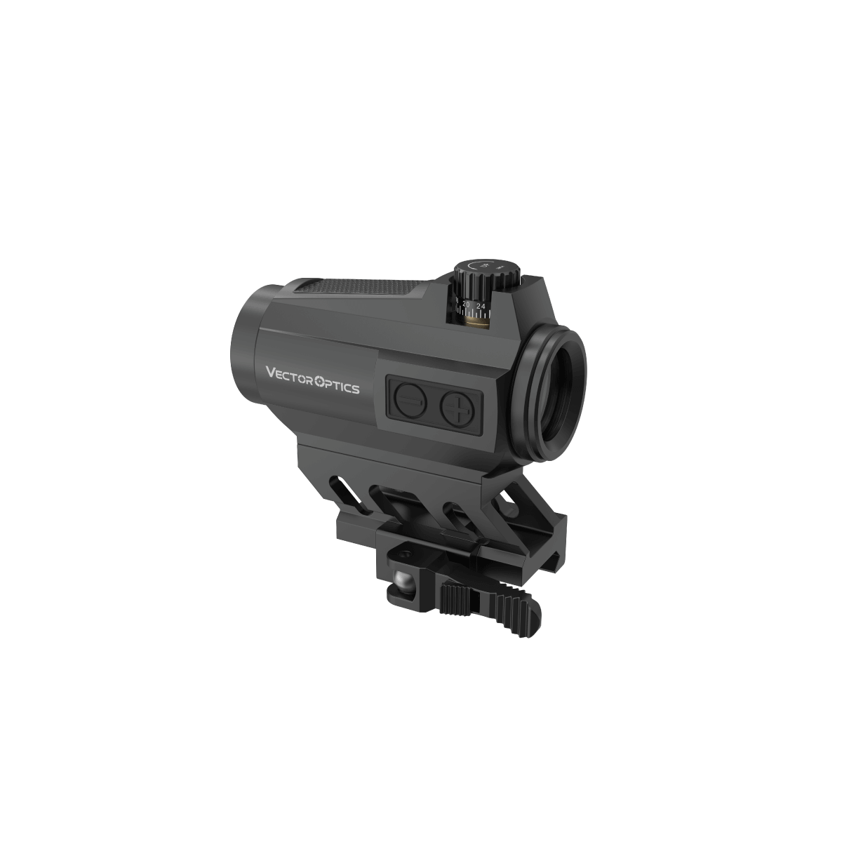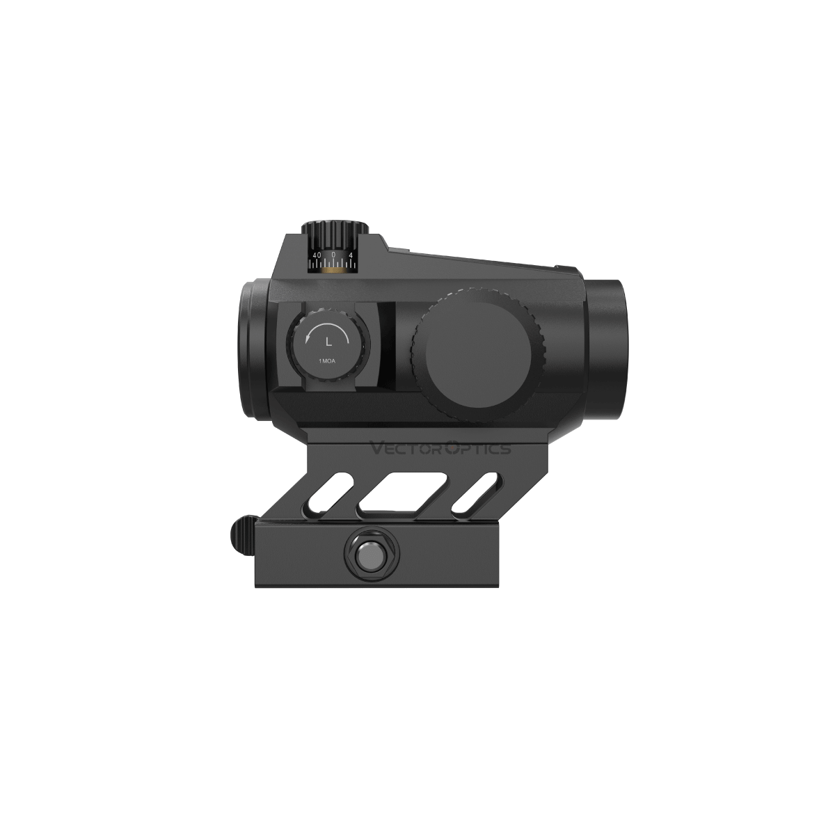 La hauteur de montage Co-Witness 1/3 inferieur (41 mm) permet un alignement optimal avec les organes de visée classiques. Le systeme de controle digital par bouton-poussoir facilite les reglages lumineux.