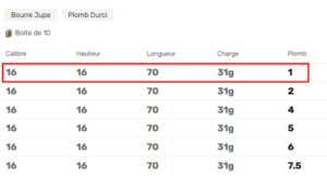PRESTIGE CAL 16/16/70 – Bourre Jupe – 31g – Plomb Durci /boite de 10