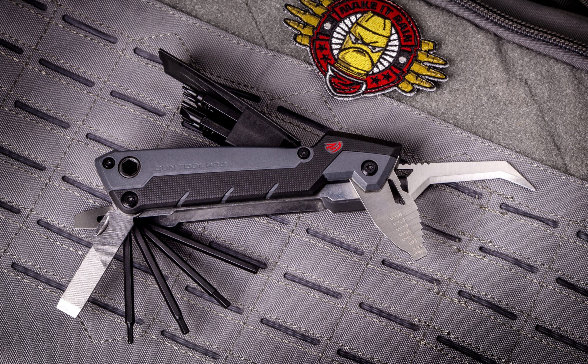 Elaboré pour les propriétaires de carabines ou fusils, le GUN TOOL Pro comprend 30 outils des plus fréquemment utilisés pour la maintenance des armes.