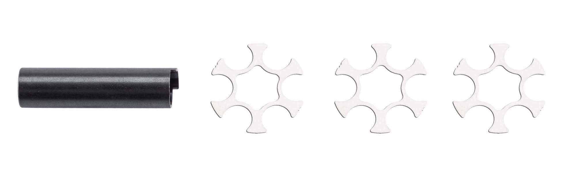 Les Moon Clip sont des dispositifs de chargement qui maintiennent les cartouches groupées pour un chargement et une éjection plus rapides du barillet. Ils sont pratiques en entraînement compétitif pour réduire les temps morts et standardiser les séquences de rechargement.